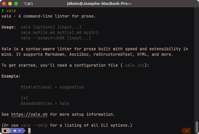 The Vale CLI is a powerful tool for linting your content in a variety of formats. To get started, try running with no arguments: